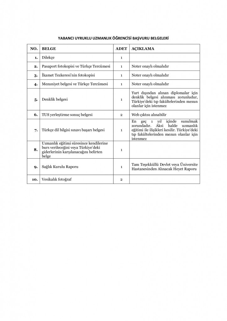 Uzmanlık Öğrencileri Başlamaya Gelirken Getirmeleri Gereken Evraklar1. Kimlik Fotokopisi (2 Adet)