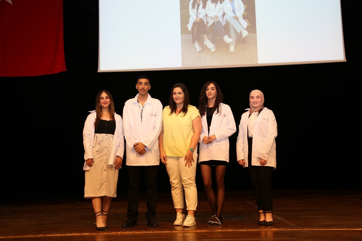 Rektör Yardımcımız Prof. Dr. Mehmet İsmail YAĞCI, Fakültemiz Dekanı Prof. Dr. Necmiye CANACANKATAN, TEB 25. Bölge Mersin Eczacı Odası Başkanı Uzm. Ecz. Aliye AKGÜL AYDIN, Güney Ecza Kooperatifi Yönetim Kurulu Başkanı Ecz. Tarkan BİR, Fakültemiz öğretim elemanları ve mezun eczacıları tarafından tarafından Fakültemize yeni başlayan 1. Sınıf öğrencilerimize beyaz önlükleri giydirildi.