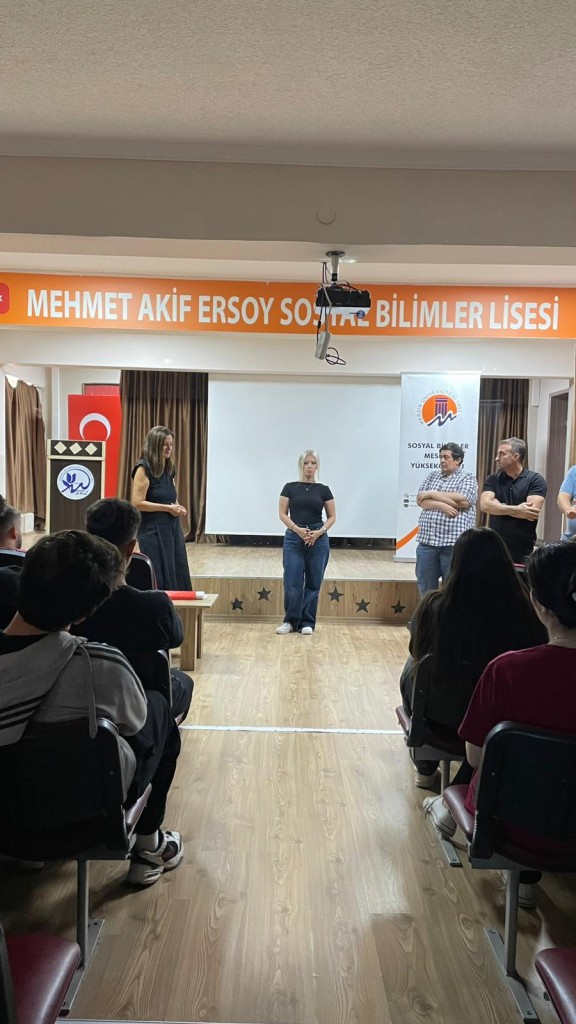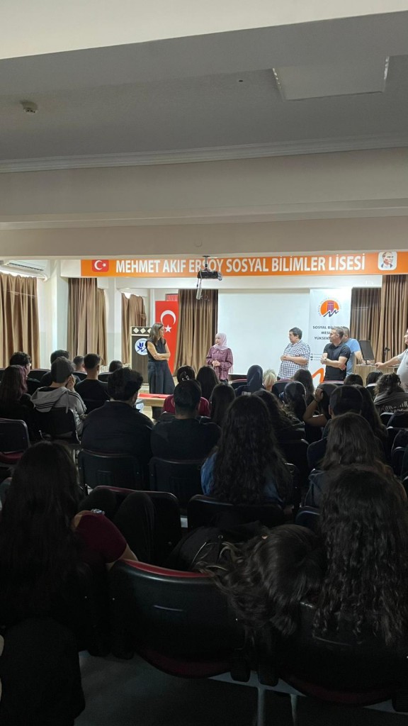 Mersin Üniversitesi Sosyal Bilimler Meslek Yüksekokulu İşletme Yönetimi Programı, 7 Ekim 2025 tarihinde Mehmet Akif Ersoy Sosyal Bilimler Lisesi’ni ziyaret ederek tanıtım etkinliği gerçekleştirdi. Tanıtıma, Bölüm Başkanımız Doç. Dr. Serpil Tomak ile birlikte bölüm öğretim elemanlarımız Dr. Öğr. Üyesi Necdet Sezal, Öğr. Gör. Dr. Adil İbin ve Öğr. Gör. Dr. Alaiddin Koşar katılım sağladı. Etkinlik kapsamında lise öğrencilerine işletme eğitiminin kapsamı, kariyer olanakları, mezuniyet sonrası iş alanları ve Mersin Üniversitesi’nin sunduğu akademik ve sosyal imkânlar hakkında bilgi verildi. Etkinliğe ayrıca İşletme Yönetimi Programı öğrencileri de katıldı. Öğrenciler, lise öğrencileriyle sohbet ederek kendi üniversite deneyimlerini, ders içerikleri ve staj süreçleriyle ilgili izlenimlerini paylaştılar. Samimi bir atmosferde gerçekleşen buluşmada, üniversite yaşamına dair merak edilen sorular da yanıtlandı. Ziyaret sonunda, üniversite tercih sürecinde işletme eğitiminin önemi vurgulandı.