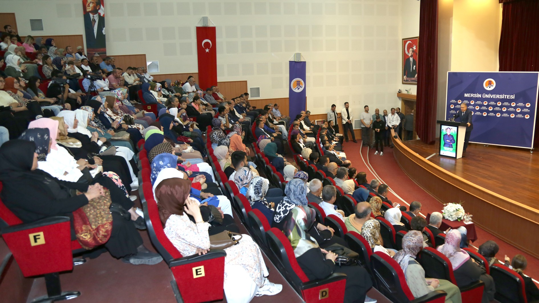 Cuma namazının ardından, Üniversitemiz Prof. Dr. Uğur Oral Kültür Merkezi’nde gerçekleştirilen konferansa geçildi. Konferansa; Rektörümüz Prof. Dr. Erol Yaşar, Rektör Yardımcımız Prof. Dr. Mehmet Çağrı Çetin, Mersin İl Müftüsü Aydın Yığman, Mersin Aile ve Sosyal Hizmetler İl Müdürü Naci Yılmaz, sivil toplum kuruluşlarının temsilcileri, Rektör Danışmanlarımız, Daire Başkanlarımız, akademik ve idari personelimiz ile öğrencilerimiz katıldı.