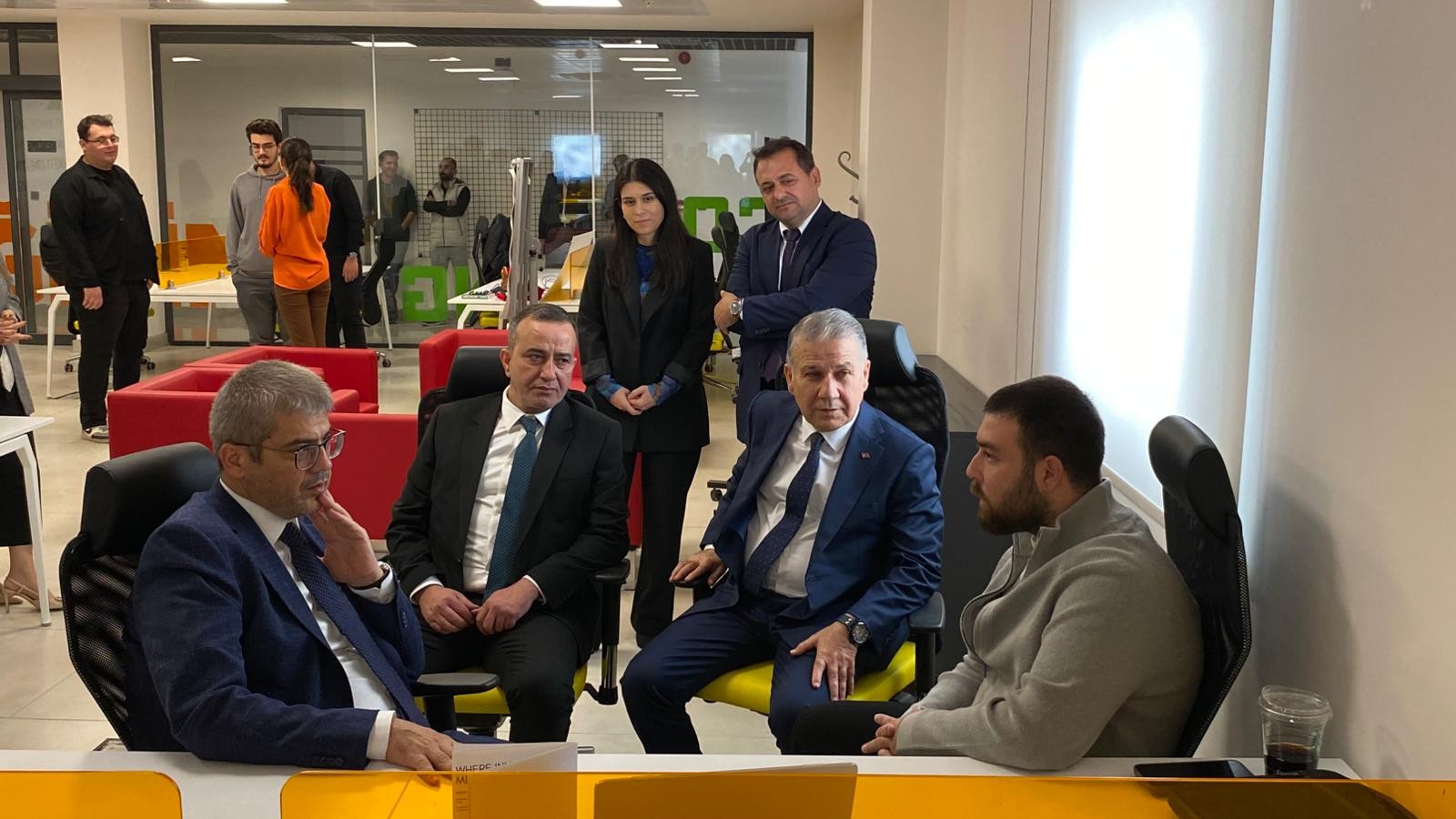 Ziyaret kapsamında heyet, merkezimizdeki genç girişimcilerle tanışarak projelerini yerinde inceledi, çalışmalar hakkında bilgi aldı ve girişimcilerimizle samimi bir sohbet gerçekleştirdi.