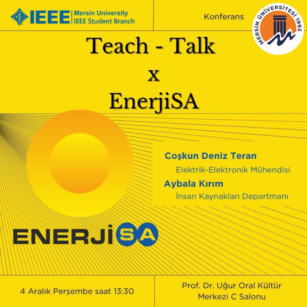 Mersin Üniversitesi IEEE Öğrenci Topluluğu tarafından organize edilen ve Enerjisa iş birliğiyle gerçekleştirilen "Tech-Talk" etkinliği, öğrencilerin yoğun ilgisiyle tamamlandı.
