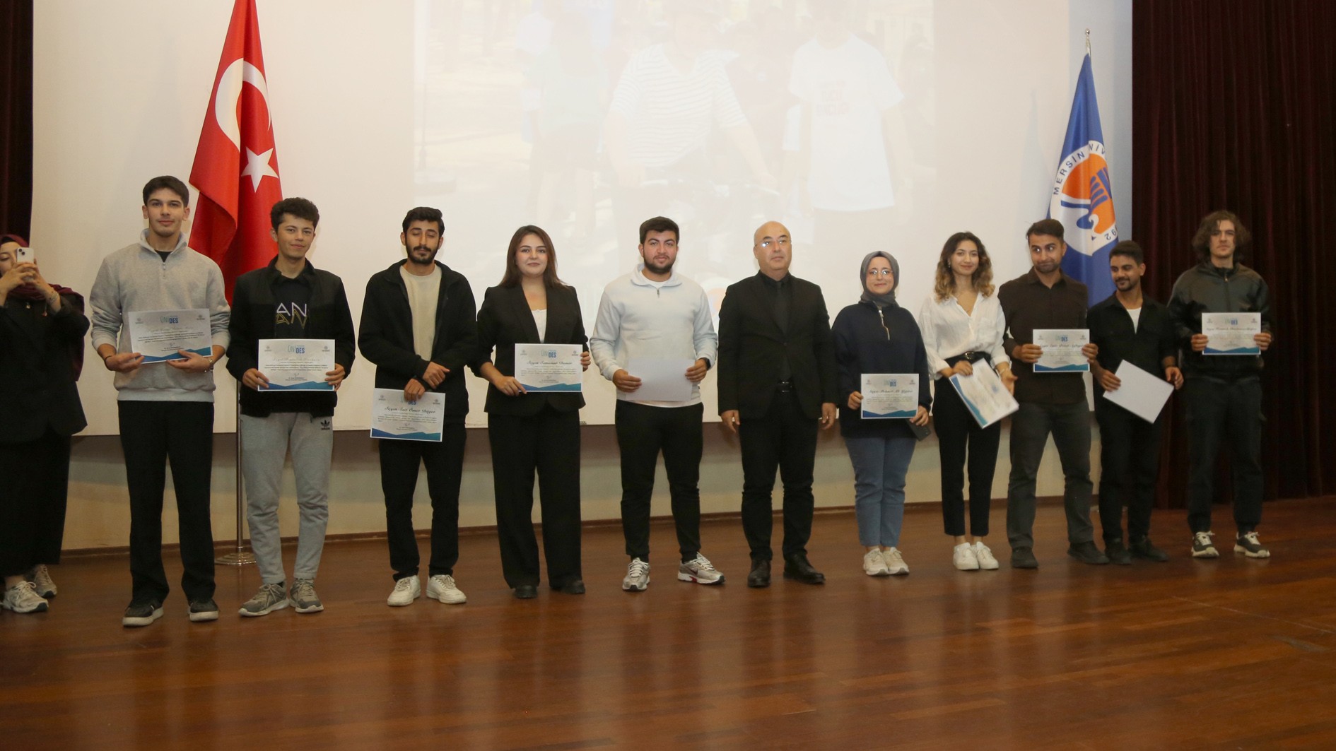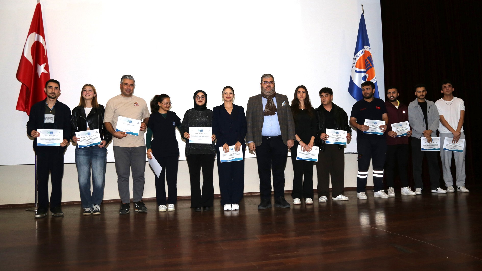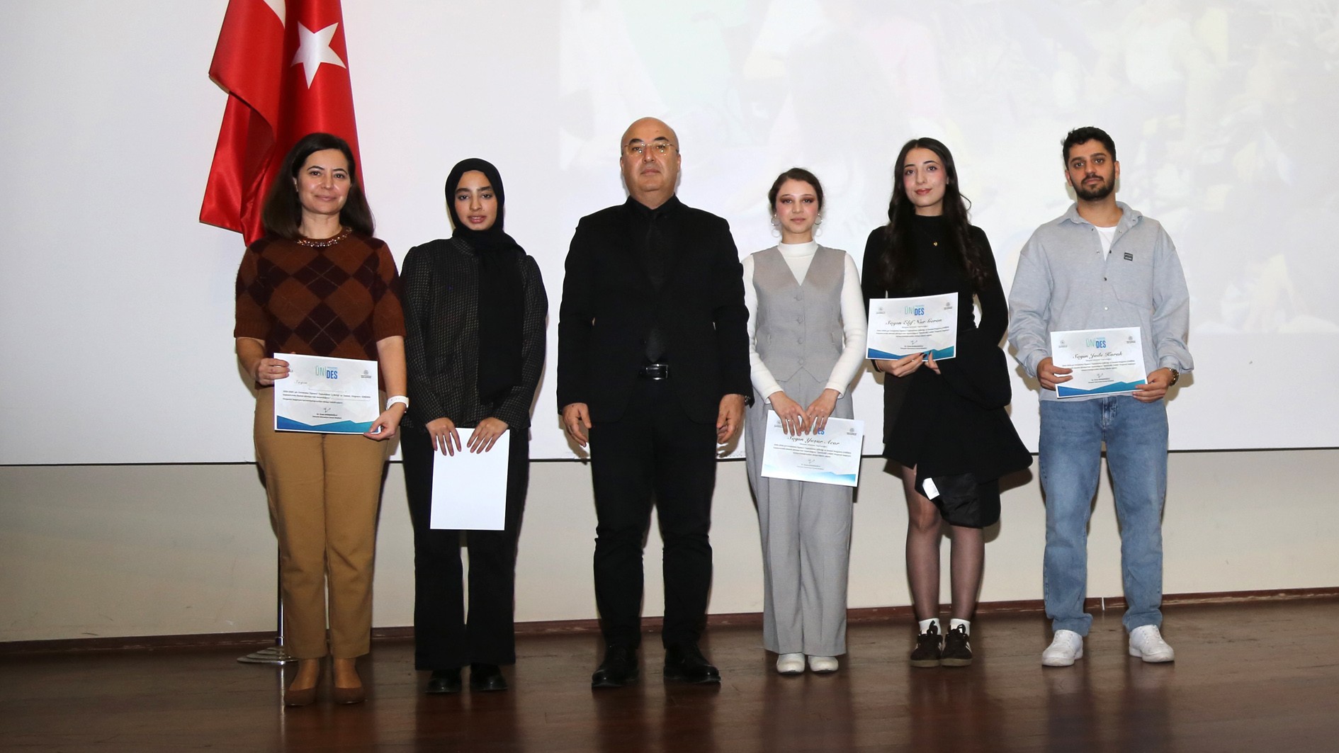 Genç Ofisler ile üniversite öğrenci toplulukları arasındaki iş birliğini güçlendirerek gençlerin sosyal, kültürel, akademik ve kişisel gelişimlerini desteklemek amacıyla hayata geçirilen ÜNİDES’in 2., 3. ve 4. dönem eğitimleri tamamlandı. Üniversitemiz Prof. Dr. Uğur Oral Kültür Merkezi’nde düzenlenen törende, eğitimlerini tamamlayan 20 öğrenci topluluğuna sertifikaları takdim edildi.