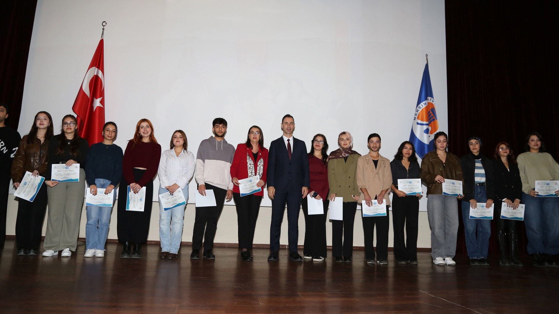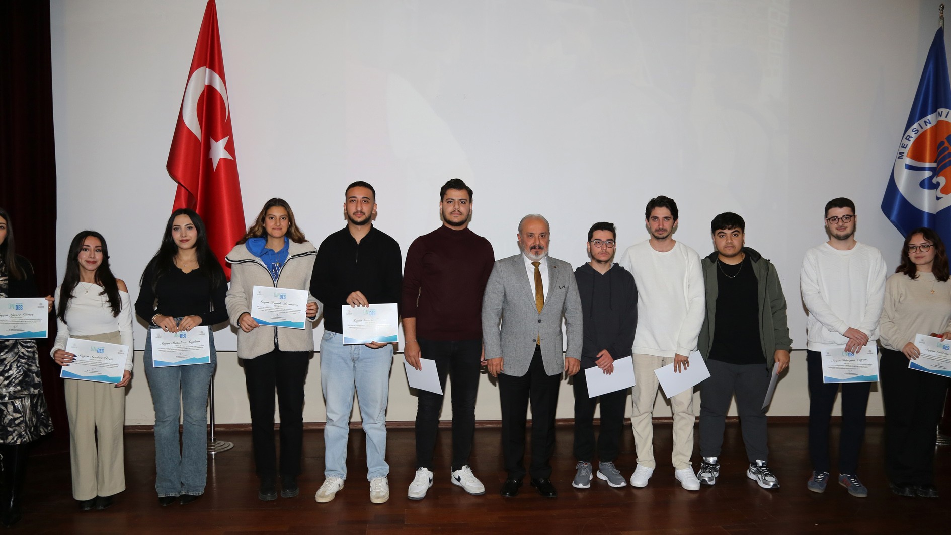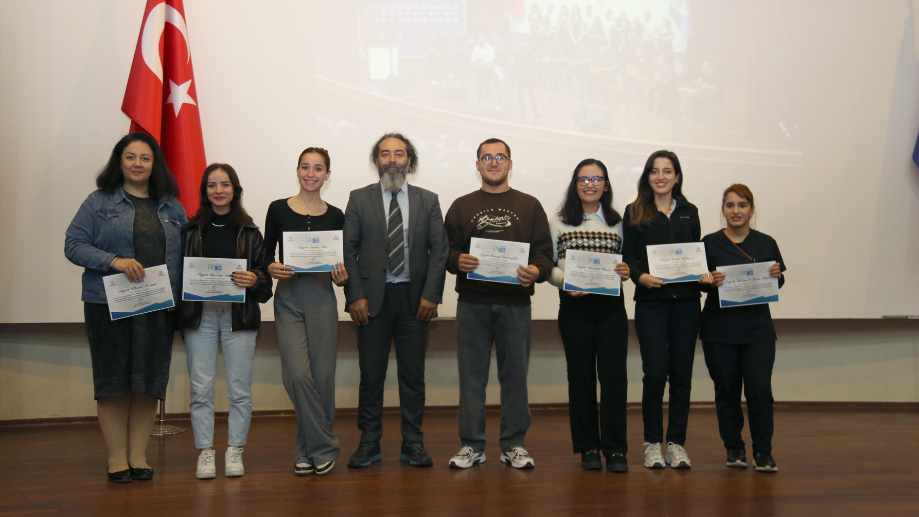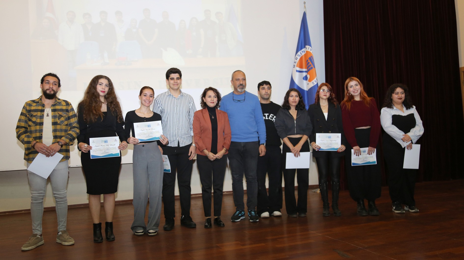 Genç Ofisler ile üniversite öğrenci toplulukları arasındaki iş birliğini güçlendirerek gençlerin sosyal, kültürel, akademik ve kişisel gelişimlerini desteklemek amacıyla hayata geçirilen ÜNİDES’in 2., 3. ve 4. dönem eğitimleri tamamlandı. Üniversitemiz Prof. Dr. Uğur Oral Kültür Merkezi’nde düzenlenen törende, eğitimlerini tamamlayan 20 öğrenci topluluğuna sertifikaları takdim edildi.