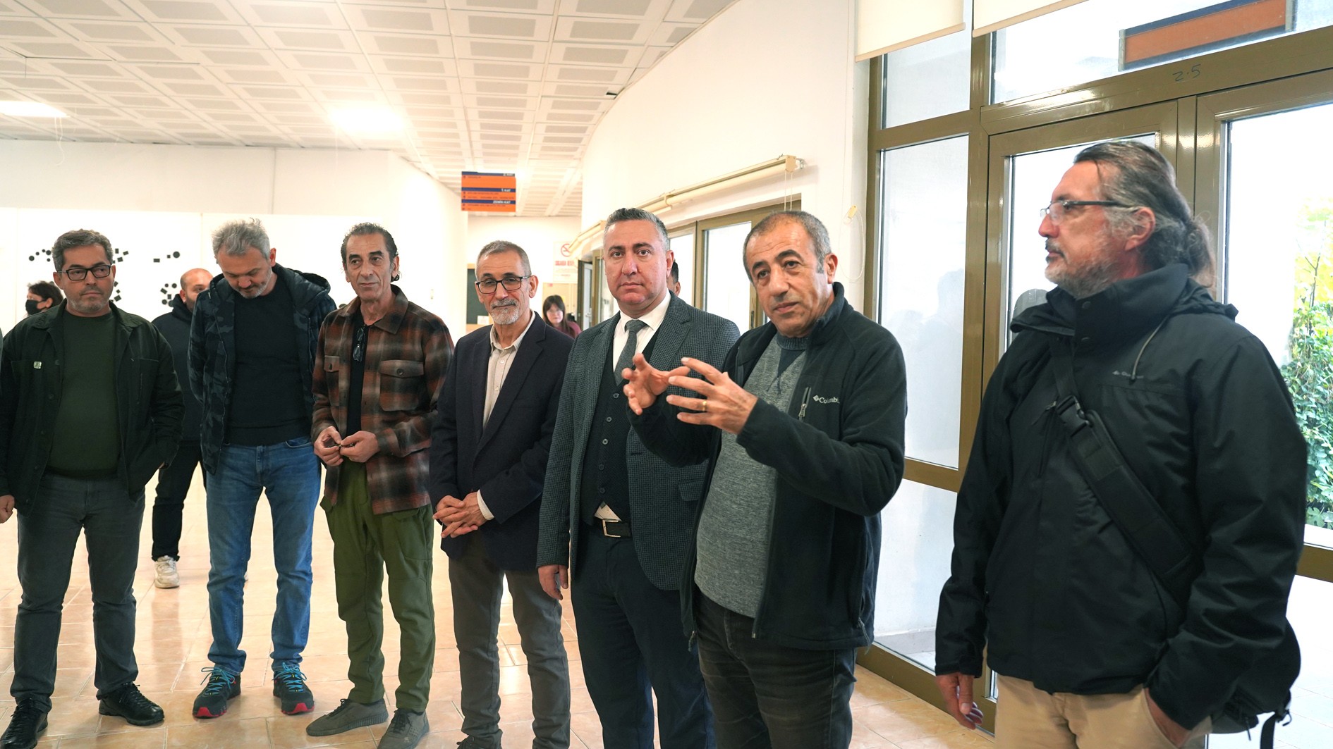 Sergi düzenleme komitesi adına konuşan Prof. Hüseyin Sönmez ise katılımcılara teşekkür ederek, “Bu sergi fakültemizin bütün bölümlerinin birinci sınıfı programında yer alan Temel Sanat Eğitimi dersinde yapılan çalışmalardan ve ağırlıklı olarak son üç yılın seçkisinden oluşturuldu. Bu nitelikli seçkinin hem öğrencilerin sanatsal gelişimlerine hem de fakültemizin sanatsal niteliğine katkı sağlayacağını umuyorum. Öğrencilerimiz ders sürecinde sadece gördükleri nesneleri etüt etmekle kalmazlar, yaptıkları çalışmaları farklı çoğaltma yöntemleriyle çalışmalarını bölerek, parçalayarak, ekleyip çıkartarak yeniden üretirler. Bu üretim süreci son derece şaşırtıcı ve heyecan vericidir. Sergi sürecinde öğrencilerimizin heyecanlarını, üretimlerini izleyicilerle paylaşmayı umuyoruz.” dedi.