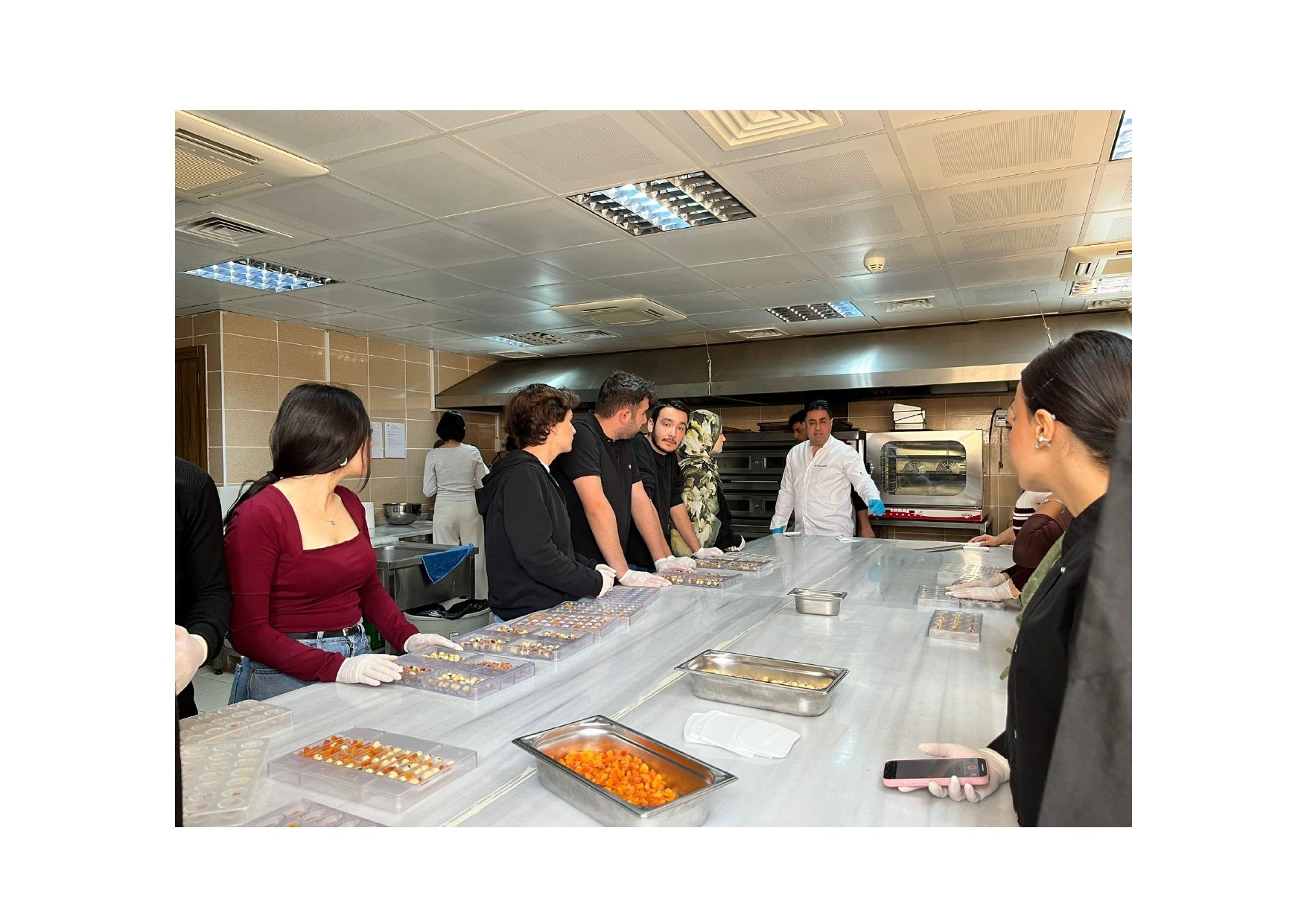 Bölümümüz bünyesinde faaliyet gösteren Gastronomi Topluluğu tarafından, uygulamalı öğrenmeyi desteklemek ve katılımcıların temel çikolata üretim süreçlerine yönelik bilgi ve becerilerini geliştirmek amacıyla çikolata workshopu düzenlenmiştir. Workshop kapsamında, bölümümüz öğretim elemanlarından Doç. Dr. Cevat ERCİK, eğitici olarak etkinliğe katkı sağlamış; katılımcılara çikolata yapım sürecini uygulamalı olarak göstermiştir. Etkinlik, 15 katılımcının aktif katılımıyla gerçekleştirilmiş; saat 11.00’de başlamış ve yaklaşık 13.30’da tamamen sona ermiştir. Workshop kapsamında klasik çikolata yapım süreci teorik ve uygulamalı olarak ele alınmıştır. Çikolatanın ham madde özellikleri, temperleme süreci, şekillendirme ve paketleme aşamaları uygulamalı olarak aktarılmıştır.