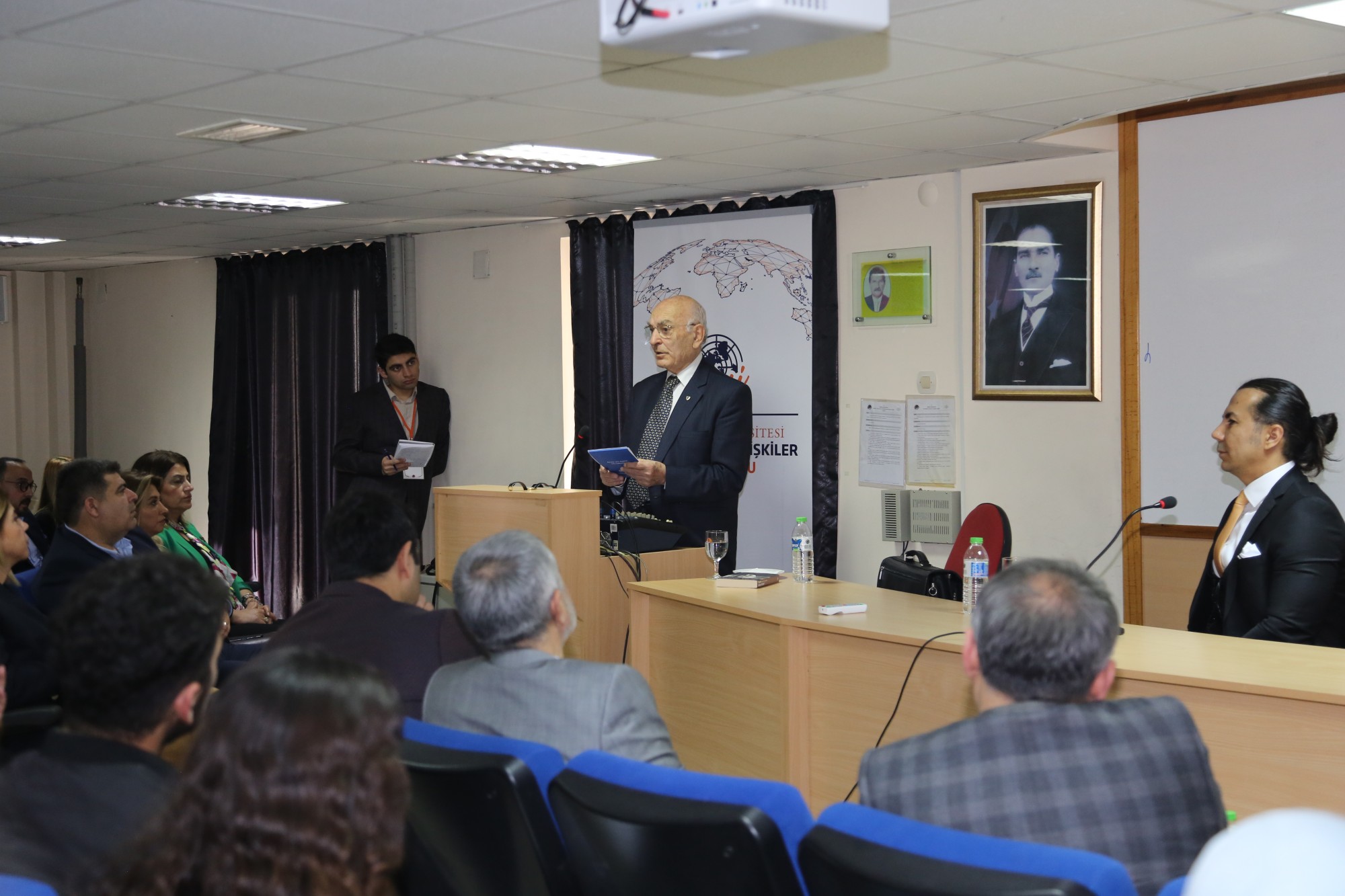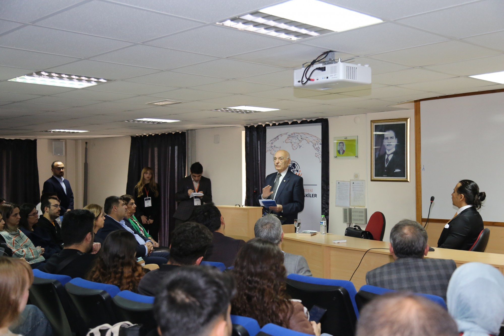 Dr. Öğr. Üyesi Yakup Şahin’in moderatörlüğünde gerçekleşen konferansa; İktisadi ve İdari Bilimler Fakültesi Dekanı Prof. Dr. Cemal Altan, Uluslararası İlişkiler Bölümü öğretim üyesi Doç. Dr. Azime Telli, İktisadi ve İdari Bilimler Fakültesi Kamu Yönetimi Bölümü öğretim üyesi Prof. Dr. Hacı Kurt ile akademisyenler ve fakülte öğrencileri katıldı.