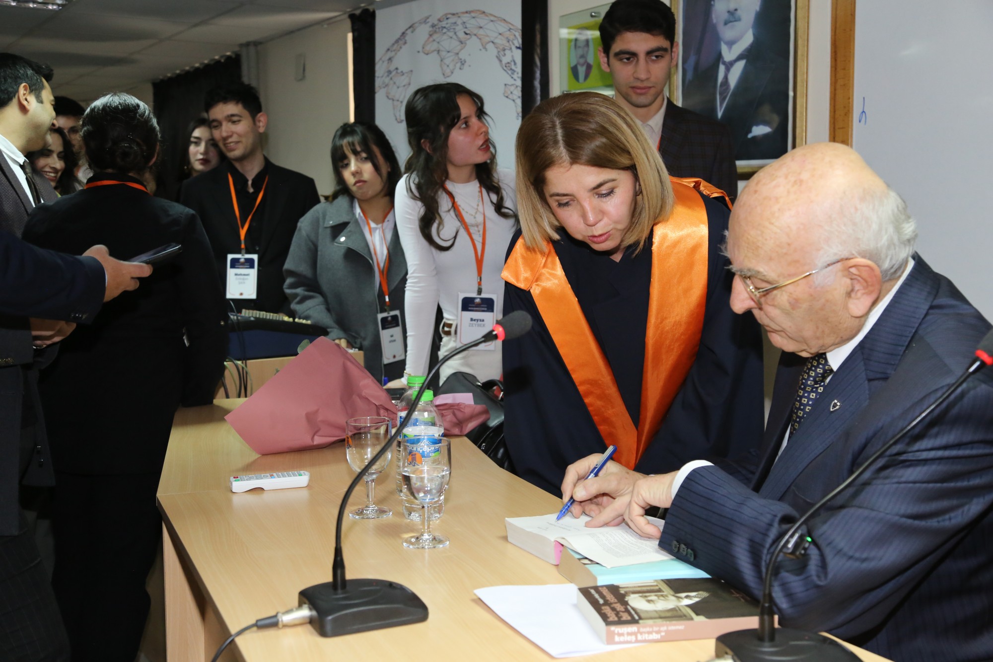 Öğrencilerin ve akademisyenlerin yoğun ilgisiyle gerçekleşen etkinliğin sonunda, öğrencilerimizden gelen sorular yanıtlandı. Ardından Uluslararası İlişkiler Bölümü adına öğretim elemanımız Dr. Öğr. Üyesi Yakup Şahin tarafından Prof. Dr. Ruşen Keleş’e hediye takdim edildi.
