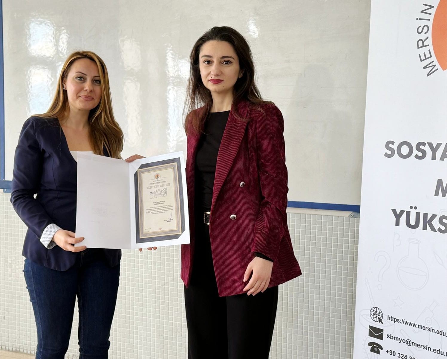 The event was also attended by the Deputy Director of the Vocational School of Social Sciences, Lecturer Dr. Emrah Yıldız, and Lecturer Dr. Mehmet Acar from the Marketing Program. At the end of the program, a certificate of appreciation was presented to Duygu Türker by the Deputy Director of the Vocational School of Social Sciences, Lecturer Pelin Kılınç Özüölmez, for her contributions.